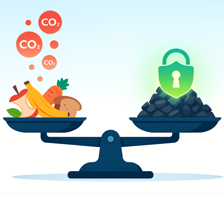 Etwa ein Drittel der weltweiten Lebensmittelproduktion geht verloren – ein Wertverlust, der gleichzeitig eine erhebliche Emissionslast darstellt. Beim Verrotten oder Verbrennen entstehen CO2 oder Methan, was Klimaziele direkt untergräbt. Lebensmittelabfälle sind aber auch reich an biogenem Kohlenstoff und bieten daher die Chance, diese Emissionen durch Umwandlung in stabile Kohlenstoffformen wie Biokohle oder Hydrokohle zu vermeiden[6].
